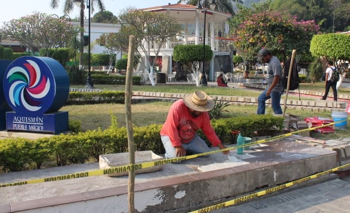 REHABILITAN LAS BANCAS DE LA PLAZA PRINCIPAL DE AQUISMÓN