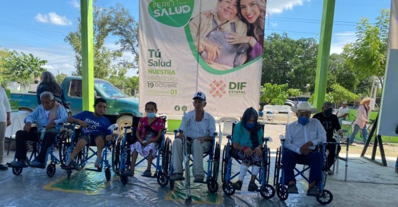 ENTREGA SILLAS DE RUEDAS Y DESPENSAS TITULAR DEL DIF EN FERIA DE SALUD
