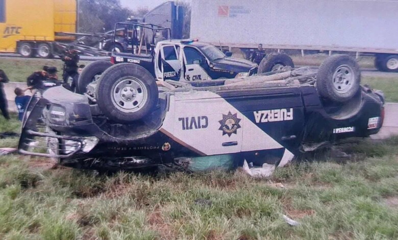 PATRULLA DE FUERZA CIVIL QUEDA DESPEDAZADA TRAS TERRIBLE VOLCADURA; HAY 7 POLICÍAS GRAVES