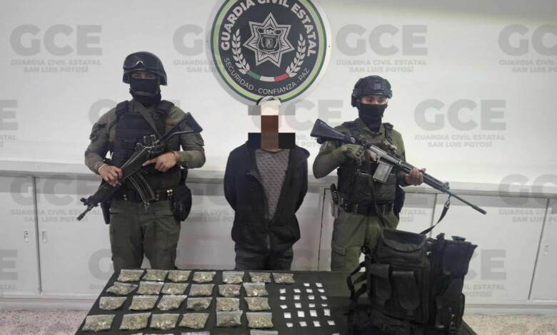 GUARDIA CIVIL ESTATAL RECUPERA VEHICULOS CON REPORTE DE ROBO Y MÁS DE 60 DOSIS DE DROGA; HAY UN DETENIDO