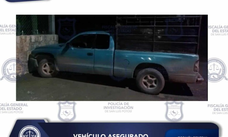 ELEMENTOS DE FGESLP ASEGURAN CAMIONETA ABANDONADA EN AQUISMÓN