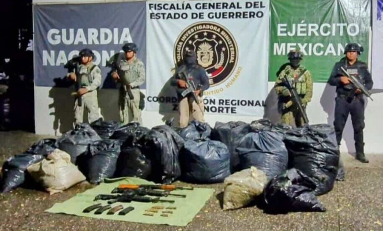 Decomisan autoridades estatales y federales más de 200 kilos de presunta droga y armamento en el municipio de Copalillo