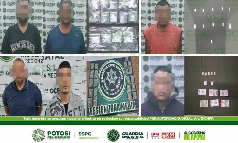 GUARDIA CIVIL ESTATAL ASEGURA 53 DOSIS DE DROGA Y CAPTURA A SEIS PRESUNTOS NARCOMENUDISTAS