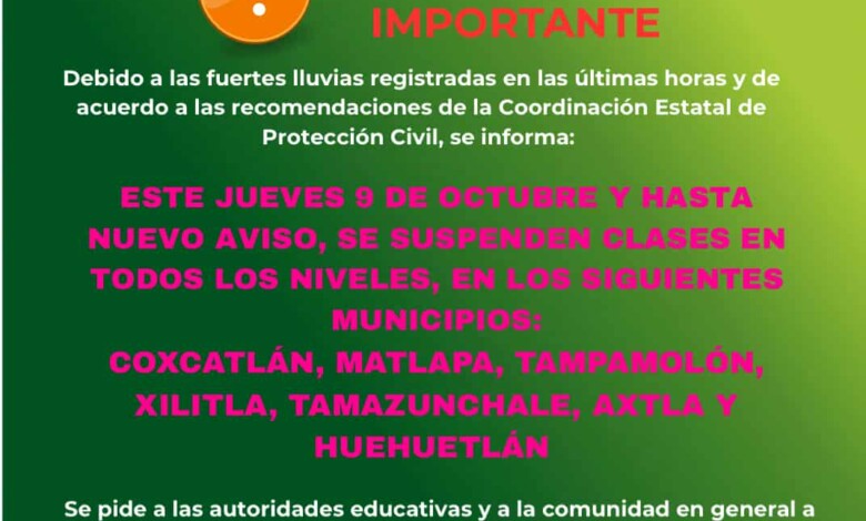 SE SUSPENDEN CLASES EN DISTINTOS MUNICIPIOS POR FUERTES LLUVIAS