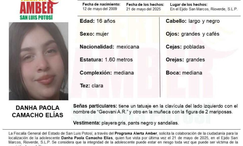 FISCALÍA DE SLP ACTIVA ALERTA AMBER PARA LOCALIZAR A UNA ADOLESCENTE EN RIOVERDE